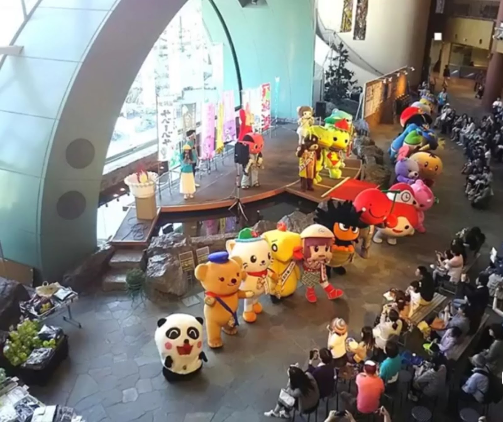 ステージに上がりきれないプー。